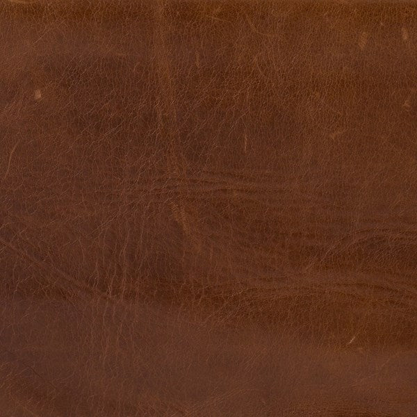 This stylish sling chair sits on an open industrial gunmetal frame. The low curved seat creates a surprisingly comfortable position. Upholstered in a tobacco top grain, full grain leather. Imported