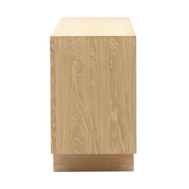 Crafted from solid oak in a light natural finish. Each compartment offers abundant storage and a removable shelf. High quality hardware assures trouble-free doors. Ideal as a buffet/sideboard or a media stand. Imported.