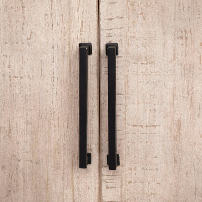 Modern lines paired with reclaimed natural pine create an organic modern appeal. Bench-crafted and hand-finished in a light white wash. The generous proportions provide ample storage and flexibility. Serves as a media stand or a buffet. Available in white wash or natural finish. Imported