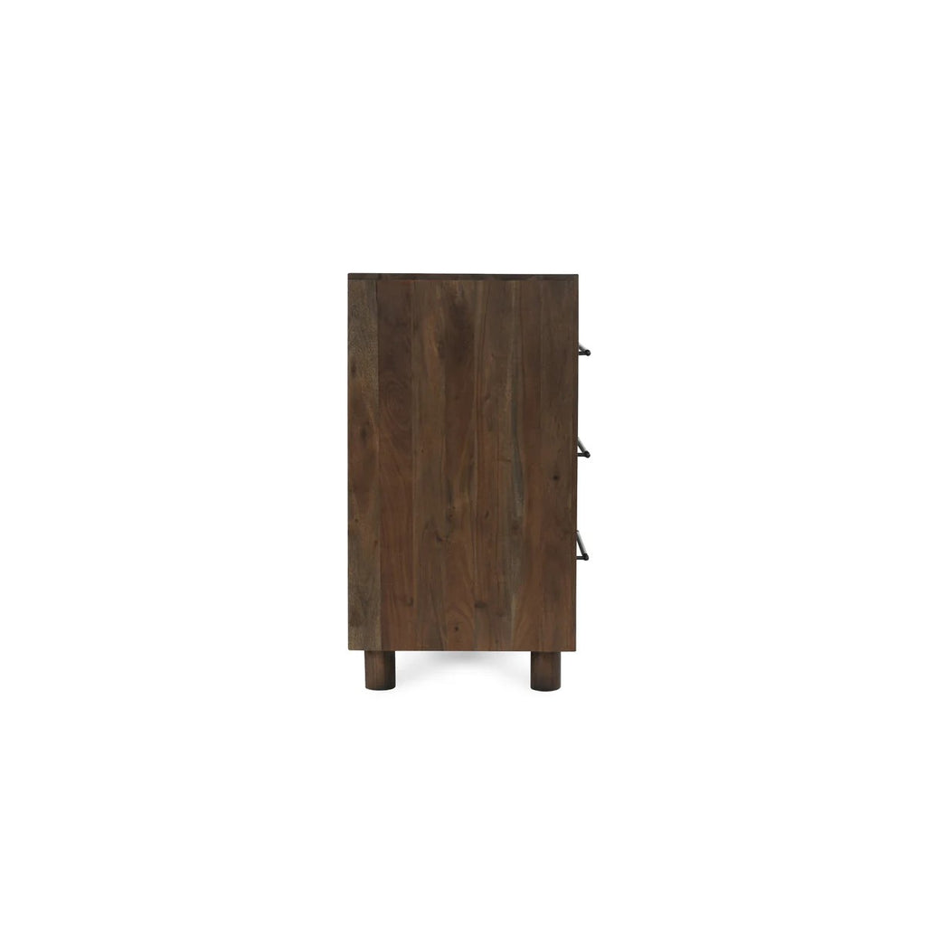 Crafted from solid acacia wood in a warm Java finish with sophisticated metal hardware. Drawers on glides. Imported