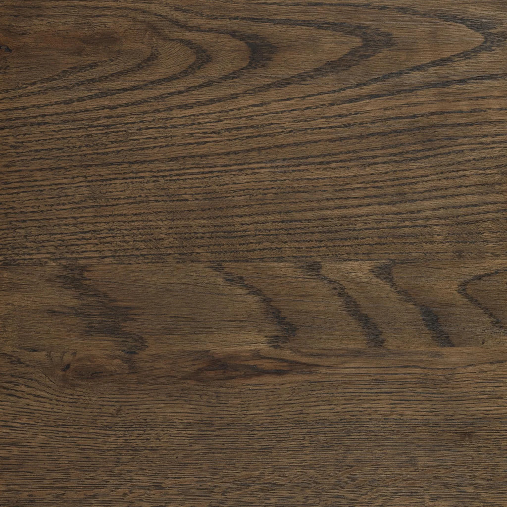 Crafted from relaimed oak veneer. A smooth oval top paired with bold pedestals create a modern design. Imported