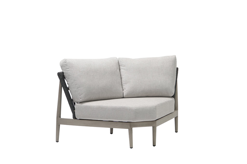 Intricately hand-woven UV resistant polyolefin ropes over hand-brushed weather-proof, powder-coated aluminum frames define this Florida-inspired collection. Cushy, rounded cushions in weather-resilient Sunbrella fabrics add ultimate comfort. Imported.