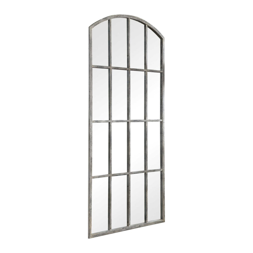 Inspired by large antique factory windows, the Amiel Arched Mirror is hand-forged with an aged rust grey finish and hand-applied white wash accents. Imported