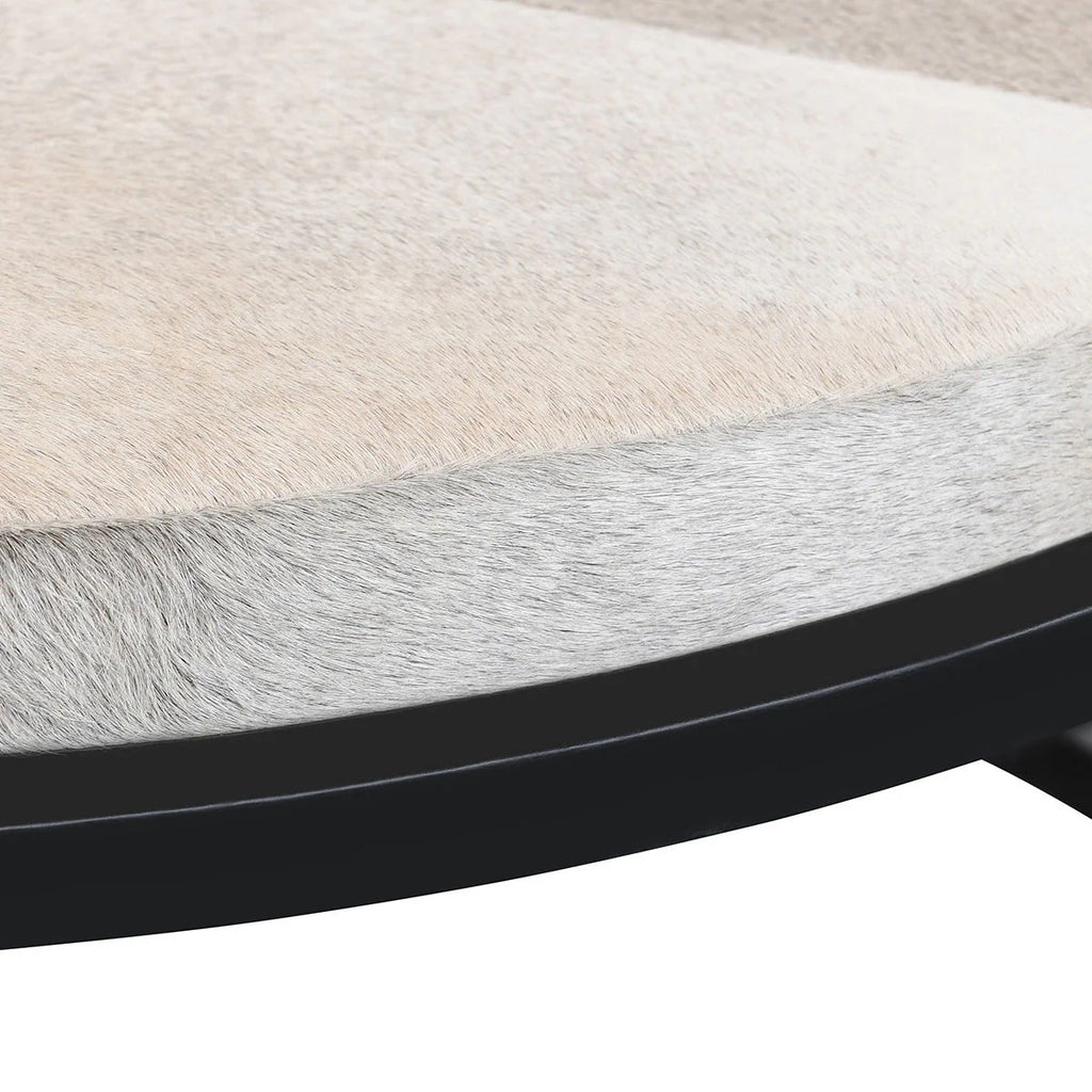 Sleek metal frames paired with carefully upholstered hair-on-hide tops create a warm, elegant and contemporary style. Fan the set to maximize surface area or tuck them close together for extra legroom.