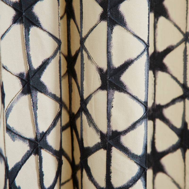 100% cotton tie dye pintuck drapery panel. Lined drapery panel with rod pocket and back tabs. 54" wide. Made in India